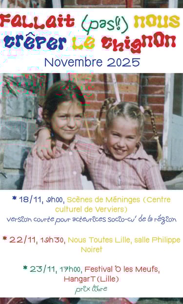 Cette conférence gesticulée est tous publics, même si elle aborde des sujets intimes puisqu'elle a trait aux relations romantiques et affectives. Elle dure 1h35 et elle peut s'accompagner d'ateliers d'expression sur le sujet à penser ensemble sur le format !