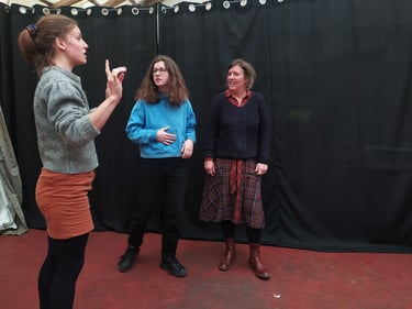 Pour cela, les spectateur.ices deviennent acteur.ices, en montant sur scène pour proposer une piste d'action. L'idée est de remplacer un des personnages dont iels se sentent proches, d'occuper sur la scène une place qu'iels pourraient avoir dans la vie... et s'entraîner à agir et réagir ! Bref, changer le cours des choses, parce qu'on en a marre de tout ça.