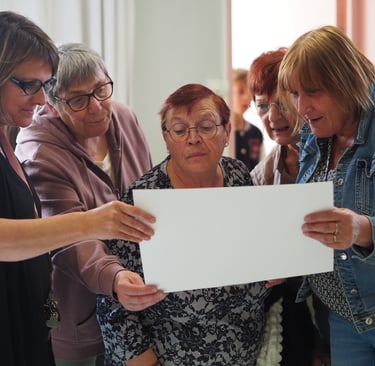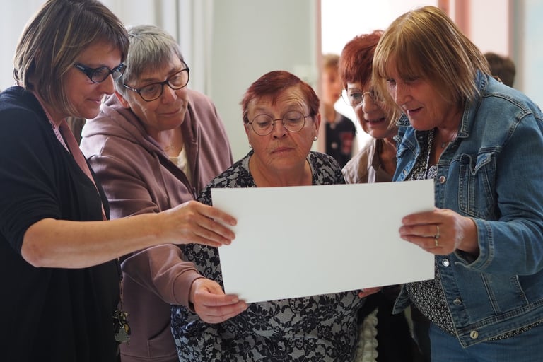 Au printemps 2025, j'ai pu mener plusieurs projets de photographie participative avec ma comparse Margot Bricout, dans le cadre du CLEA du Pays d'Opale. Ce que vous voyez là est le résultat de la convergence de plusieurs de nos intérêts : la photo d'archive, le théâtre, la prise de vue collective, la transformation et ré-appropriation de l'image... tout ceci pour créer des cartes postales!