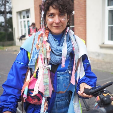 Ces cartes postales mêlant les générations du village ont été distribuées à tous les seniors y habitant pour les convier à un goûter organisé par l'école toute entière quelques semaines plus tard. Chapeau aux CM2 et leur institutrice pour cette parade colorée en vélo, qu'on a accompagnée avec nos plus belles paillettes et costumes en récup' textile !