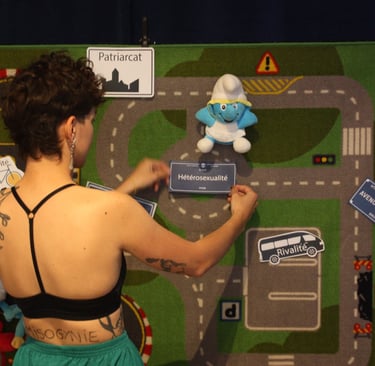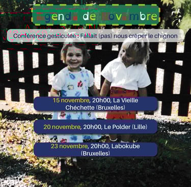 Une conférence gesticulée mêle des savoirs théoriques (des savoirs "froids" avec de l’expérience vécue (des savoirs chauds); l’idée est d’aborder un thème social et politique pour conscientiser sur le sujet, mais aussi être porteur de changement !